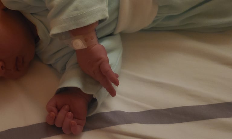 J'ai ensuite été cherchée - toujours à pied - pour être installée dans la salle d'accouchement, où la sage-femme s'est présentée. Selon le personnel présent, je me suis retrouvée dans une situation rare, j'ai dû partager la salle de travail avec une autre patiente. Concrètement : une bâche séparait la pièce en deux, on s'entendait, la sage-femme faisait des allers-retours, nous ne nous sommes pas vues. Je suis tombée sur une sage-femme expérimentée et très sympathique. Elle m'a proposé plusieurs méthodes pour réduire la douleur. Ici en Slovénie, et contrairement à la France, le protoxyde d'azote est assez répandu, mais suite aux retours de quelques proches, j'ai préféré choisir une péridurale. L'anesthésiste est arrivé assez rapidement avec son assistante. Il m'a rapidement expliqué la procédure et après une signature il a commencé à tout préparer. Et mon conjoint dans tout ça ? Je lui ai écrit tout de suite après la perte des eaux et il était donc de retour depuis un moment à la clinique. Malheureusement, il a été un peu "oublié" par le personnel. Il est donc arrivé juste après la pose de la péridurale. L'accouchement s'est déroulé sans complications. Bébé est arrivé vers 16h, et c'est un peu après 19h que j'ai pu rejoindre la chambre. J'ai partagé la chambre avec une seule autre maman, ce qui était une bonne surprise.